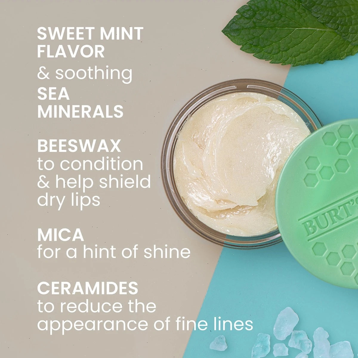 Take a moment for yourself and mellow out with a hint of sweet Mint. Tap into a soothing state of calm and treat your lips to all-day hydration and a hint of shine with Burt’s Bees® Sweet Mint Lip Treatment. Delivering up to 8 hours of moisturization for healthier feeling lips, this Burt’s Bees® lip care is enriched with Sunflower Seed wax and responsibly sourced jojoba oil to help shield dry lips. With a naturally derived fragrance and flavor, it soothes lips and mood all in one swipe. The 100% natural origin formula is lovingly formulated without parabens, phthalates, SLS or petrolatum. And best of all, you can feel good while you look good thanks to a jar that is recyclable with Terracycle®, the carton that is made from 100% recyclable paperboard and a company with Landfill-Free Operations and CarbonNeutral® Certification.