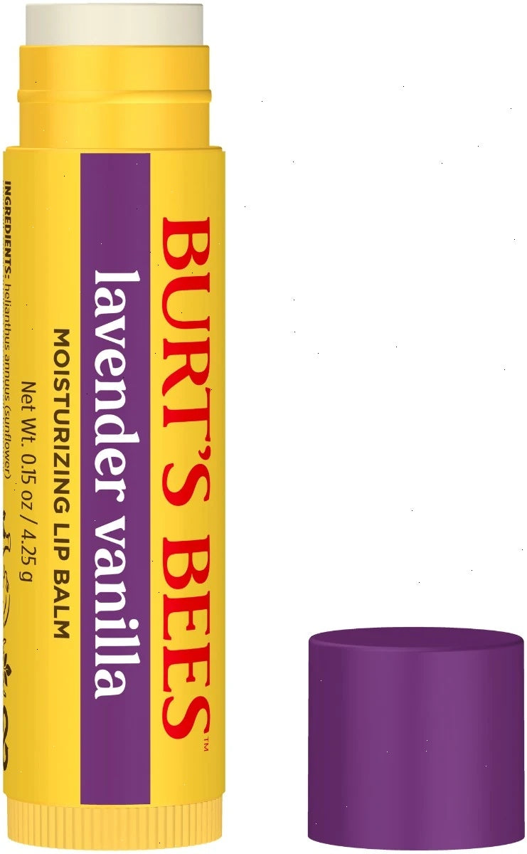 Burt’s Bees Lip Balm softens and hydrates your lips to help prevent dryness, cracking or chapping. Infused with nourishing oils, butters and responsibly sourced beeswax, the moisturizing lip balm hydrates dry lips for up to 24 hours. It glides on smoothly, leaving behind a tint-free, matte finish and soft, supple lips. The soothing embrace of lavender mingles with sweet vanilla in this Burt’s Bees Lavender Vanilla Moisturizing Lip Balm.