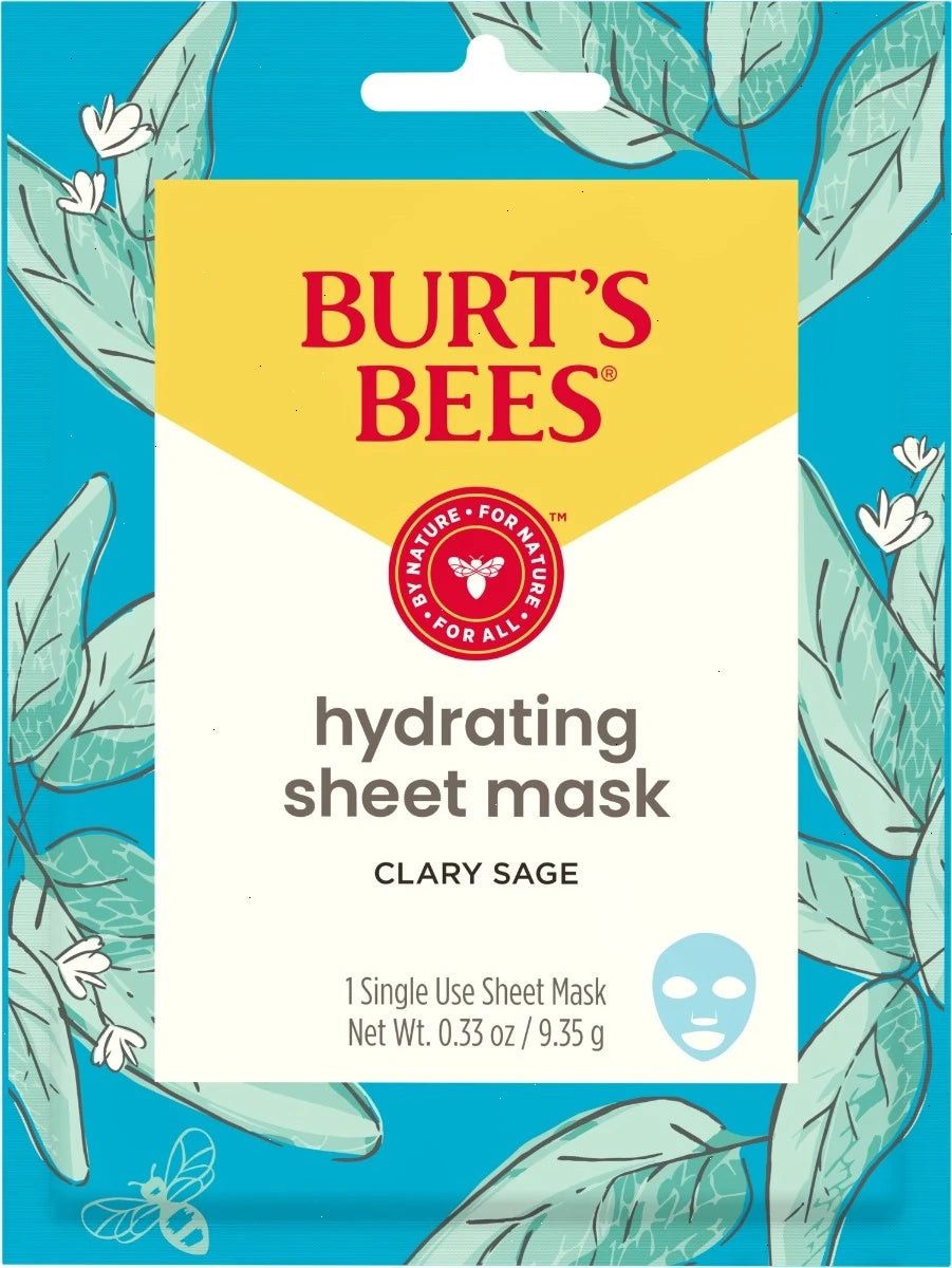 Give your skin the gift of long lasting hydration with Burt's Bees® Hydrating Sheet Masks. These masks are infused with clary sage to instantly moisturize, balance PH and improve the texture of your skin. Extracts from plants and flowers help to promote healthy skin and effectively keeps the skin hydrated, revitalized, and radiant. They are specially formulated to leave your skin feeling soft and supple. Hydrating masks are easy to use, simply lift the mask from the pouch, apply mask to clean skin, wait 5 to 10 minutes and gently remove. Burt's Bees® Hydrating Sheet Masks are made with 99% natural ingredients, dermatologist tested and contain no parabens, phthalates or petrolatum. Give your skin the best nature has to offer with Burt’s Bees®. • One single use Burt's Bees® Hydrating Sheet Mask to instantly moisturize and improve the texture of your skin, leaving it soft and supple with long lasting results • Masks are infused with clary sage to instantly moisturize, balance PH and improve the texture of your skin and formulated for normal to dry skin types • Extracts from plants, including Clary Sage, and flowers are used to help promote healthy skin and effectively keeps the skin hydrated, revitalized, and radiant • Hydrating masks are easy to use, simply lift the mask from the pouch, apply mask to clean skin aligning edges, wait 5 to 10 minutes and gently remove mask • Burt’s Bees Hydrating Sheet Masks are made with 99% natural ingredients, are dermatologist tested and they contain no parabens, phthalates or petrolatum • Do not use on broken or irritated skin. If product causes discomfort, remove mask immediately and rinse face. If irritation occurs, stop use and consult a physician.