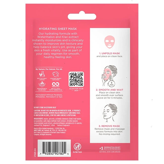 Our Watermelon Sheet Mask instantly moisturizes, helps balance skin's pH and improves skin texture, all with a ripe watermelon scent that’s reminiscent of summer days. In just five minutes, you can enjoy a transportive treat that will leave skin feeling soft, supple and pampered.