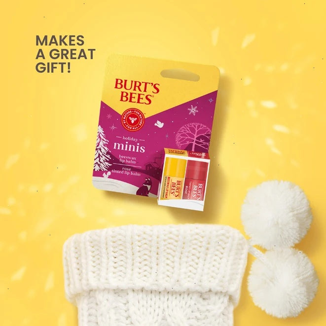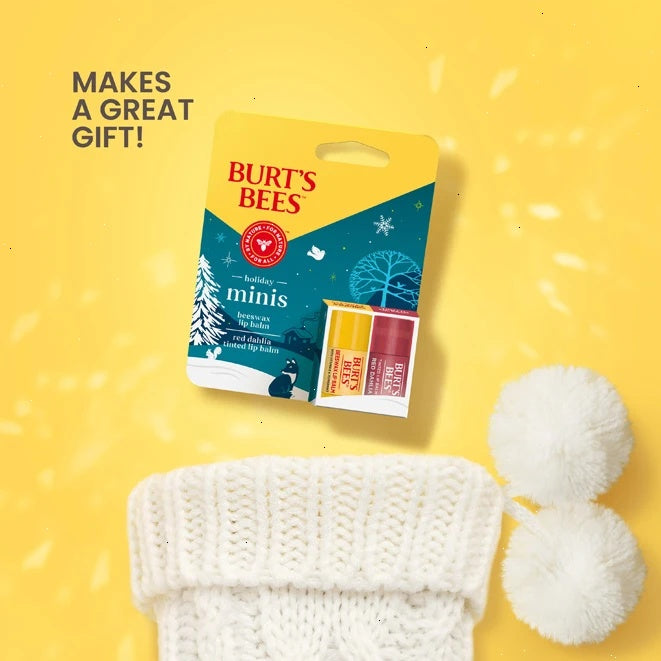 Give your loved ones kissable, moisturized lips for Christmas with the Burt’s Bees Holiday Minis Moisturizing Lip Balm Gift Set. With both the Original Beeswax Lip Balm and Red Dahlia Tinted Lip Balm or Rose Tinted Lip Balm, this Burt’s Bees Gift Set makes a great present that provides both a tint-free and tinted lip balm for a conditioning lip treatment your guests and loved ones will adore. Infused with Beeswax and Vitamin E, the Burt’s Bees Original Beeswax Lip Balm richly moisturizes and softens dry lips to keep them nourished and hydrated in the chilly winter weather. The Red Dahlia and Rose Tinted Lip Balms give you a hint of color with eight hours of moisturization.